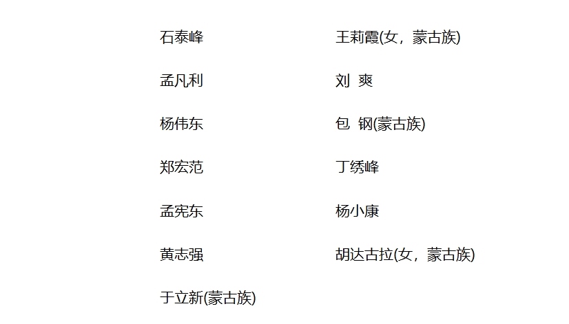 中國(guó)共產(chǎn)黨內(nèi)蒙古自治區(qū)第十一屆委員會(huì)常務(wù)委員會(huì)委員名單(13人)