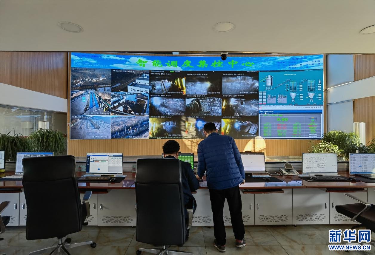 麻地梁煤礦地面智能調(diào)度集控中心的大屏幕上,可以實(shí)時(shí)查看煤礦各個(gè)生產(chǎn)環(huán)節(jié)的狀況。新華網(wǎng) 楊騰格爾攝