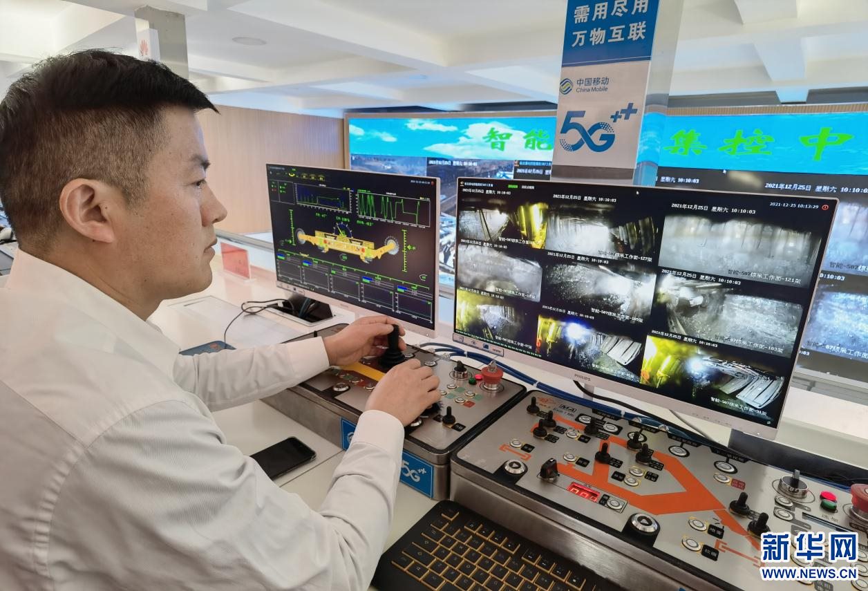 在智能調(diào)度集控中心,1名井下采煤掘進(jìn)機(jī)司機(jī)坐在辦公室里,看著顯示器上實(shí)時(shí)回傳的井下畫(huà)面,手握操縱桿遠(yuǎn)距離控制井下的采煤掘進(jìn)機(jī)進(jìn)行掘采。據(jù)介紹,智能集控中心僅需8個(gè)人,就可以幫助煤礦實(shí)現(xiàn)全年800萬(wàn)噸產(chǎn)量。