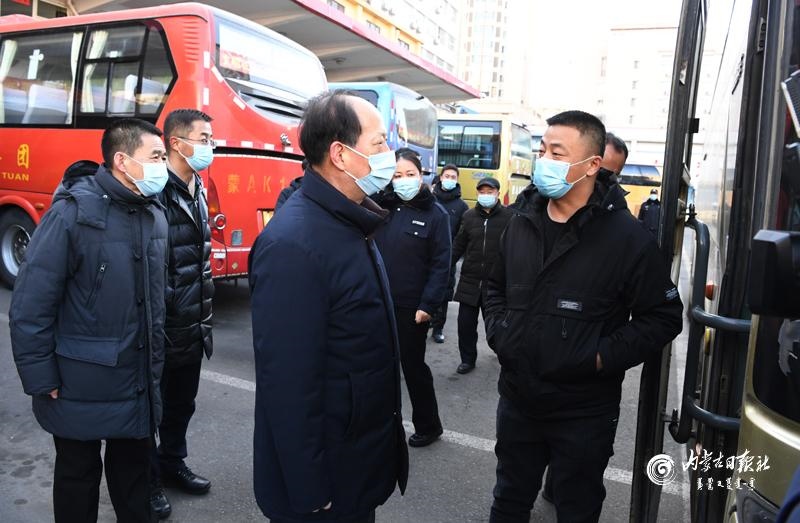 節(jié)假日期間人員流動增加,做好疫情防控和交通出行保障非常重要。石泰峰來到呼和浩特火車站、長途汽車站,看望慰問一線工作人員,實地了解各項措施落實情況。通過車站自助驗證通道后,石泰峰首先來到售票處,詢問旅客購票和出行情況,叮囑車站工作人員在節(jié)假日期間要實行網(wǎng)上預(yù)約購票,避免人員聚集。在進(jìn)站口,石泰峰看到旅客掃碼后還需人工查驗結(jié)果,他強調(diào),要優(yōu)化售票檢票等服務(wù)流程,充分運用技術(shù)手段改進(jìn)旅客進(jìn)站檢查方式,切實堵塞工作漏洞。要嚴(yán)謹(jǐn)細(xì)致做好進(jìn)站測溫、驗碼等防疫檢查,嚴(yán)格控制、科學(xué)調(diào)節(jié)客流量。要加強規(guī)范佩戴口罩、保持安全距離等防范措施提醒,引導(dǎo)旅客做好個人防護(hù)。在汽車站停車場,石泰峰與司乘人員交談,深入了解車輛消殺、信息登記等情況。隨后,他乘坐地鐵2號線,調(diào)研疫情防控和市民出行情況。他強調(diào),要嚴(yán)格落實常態(tài)化交通運輸疫情防控要求,認(rèn)真落實客運場站和交通運輸工具消毒通風(fēng)、設(shè)置隔離區(qū)等措施,加強客運一線服務(wù)人員日常健康監(jiān)測和定期核酸檢測,制定應(yīng)急預(yù)案,完善相關(guān)設(shè)施,讓群眾出行更加安全順暢舒心。