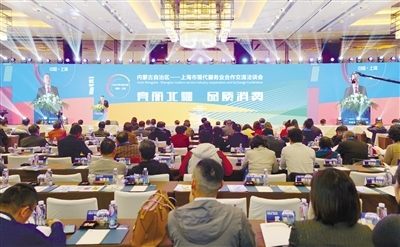 自治區(qū)商務(wù)廳在上海舉辦“內(nèi)蒙古自治區(qū)—上海市現(xiàn)代服務(wù)業(yè)合作交流洽談會(huì)”。內(nèi)蒙古日報(bào)社融媒體記者高慧攝