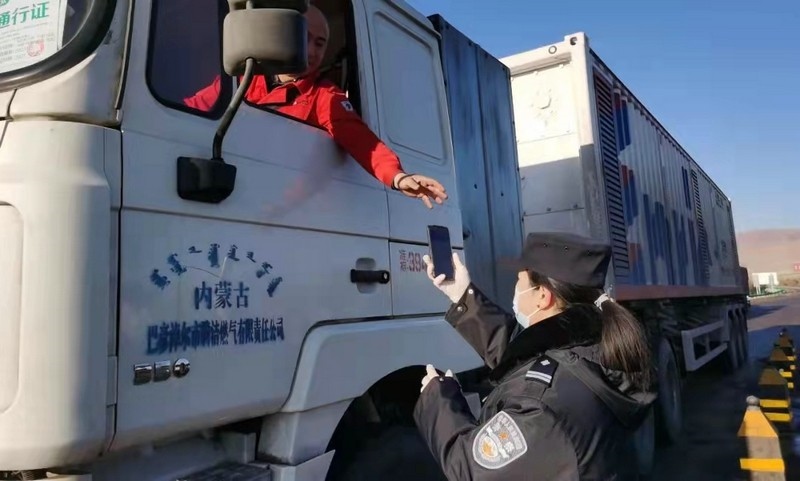 在巴彥淖爾市烏拉特中旗牧羊海疫情防控服務(wù)點(diǎn),工作人員正對(duì)來(lái)往的車(chē)輛人員進(jìn)行檢測(cè)、掃碼、詢(xún)問(wèn)、登記……