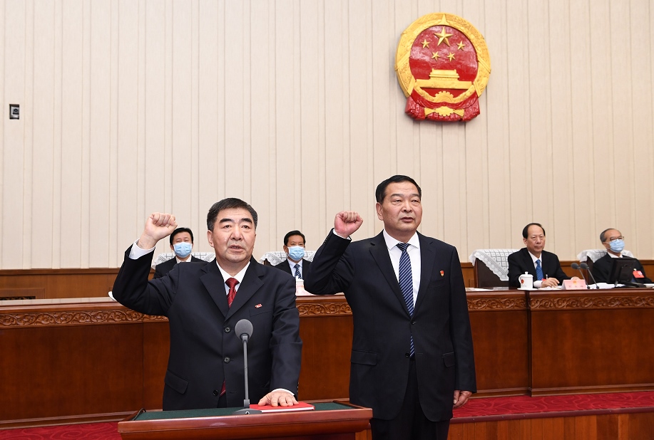 自治區(qū)十三屆人大常委會第三十四次會議在圓滿完成各項議程后,于3月29日下午閉幕。自治區(qū)黨委書記、人大常委會主任石泰峰主持第二次全體會議,并為新任職人員頒發(fā)任命書。