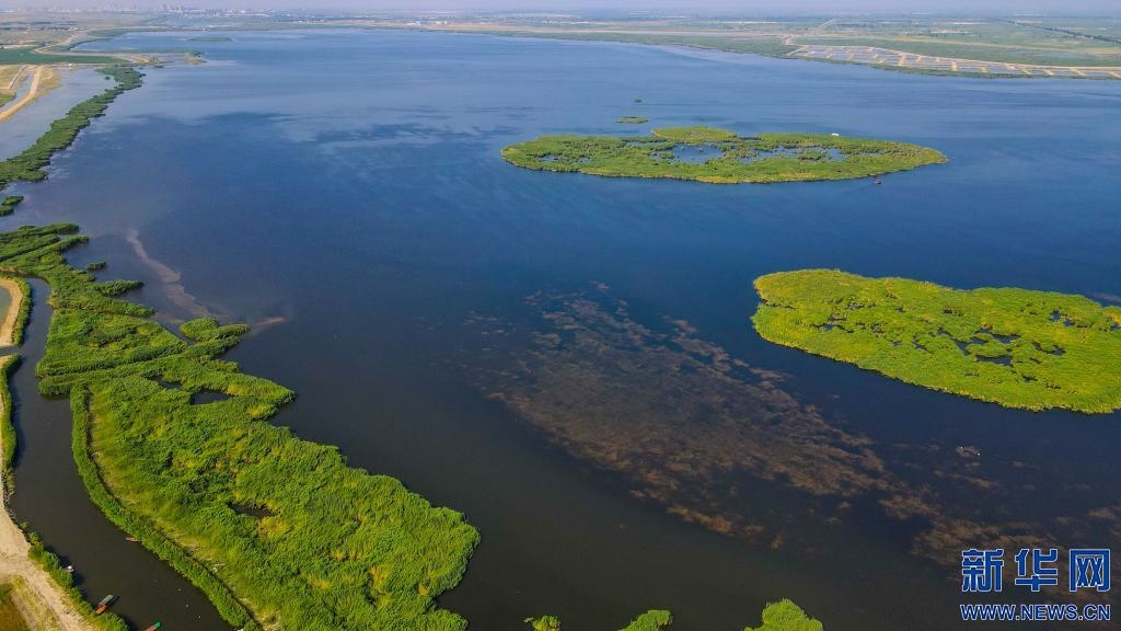 經(jīng)過多年治理,烏梁素海重現(xiàn)“塞外明珠”美景(無人機(jī)照片)。新華社記者彭源 攝