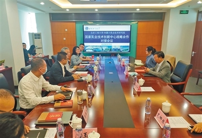 國家乳業(yè)技術(shù)創(chuàng)新中心團(tuán)隊與任發(fā)政院士團(tuán)隊交流。