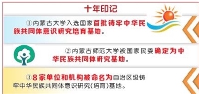 2020年2月,內(nèi)蒙古大學(xué)入選國(guó)家首批鑄牢中華民族共同體意識(shí)研究培育基地;2021年3月,內(nèi)蒙古師范大學(xué)被國(guó)家民委確定為中華民族共同體研究基地;2021年8月,8家單位和機(jī)構(gòu)被命名為自治區(qū)級(jí)鑄牢中華民族共同體意識(shí)研究(培育)基地……內(nèi)蒙古不斷加強(qiáng)中華民族共同體重大基礎(chǔ)性問題研究,持續(xù)推動(dòng)鑄牢中華民族共同體意識(shí)與經(jīng)濟(jì)發(fā)展、鄉(xiāng)村振興、生態(tài)保護(hù)、基層治理等有機(jī)結(jié)合,深度融合。
