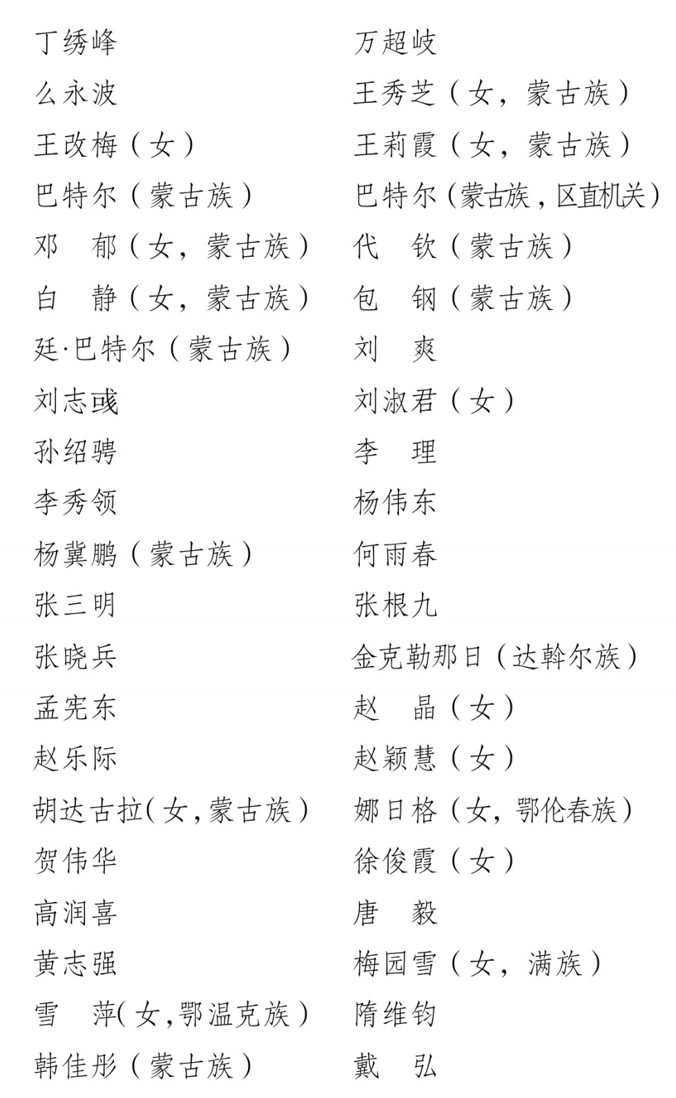 6月30日,內(nèi)蒙古自治區(qū)黨代表會議選舉產(chǎn)生出席黨的二十大代表42名。代表名單如下(按漢字姓名筆畫為序):