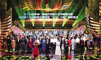 8月31日晚,第十九屆中國·內(nèi)蒙古草原文化節(jié)閉幕式暨全區(qū)第十五屆精神文明建設(shè)“五個(gè)一工程”頒獎(jiǎng)儀式在內(nèi)蒙古藝術(shù)劇院舉行。內(nèi)蒙古日報(bào)社融媒體記者王磊攝