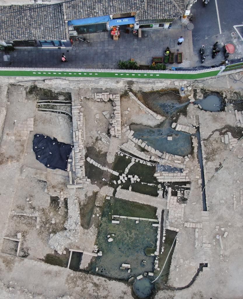 俯瞰朔門(mén)古港遺址發(fā)掘出的甕城遺址(10月10日攝,無(wú)人機(jī)照片)。新華社記者翁忻旸 攝