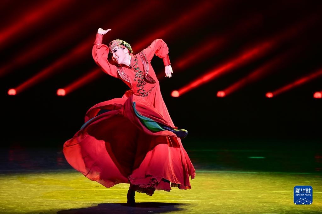 3月27日,內(nèi)蒙古藝術(shù)劇院歌舞團(tuán)參賽演員表演獨(dú)舞《初升的太陽》。新華社發(fā)(王正攝)