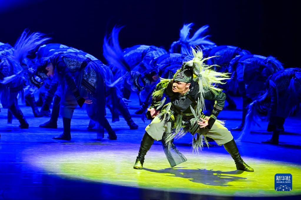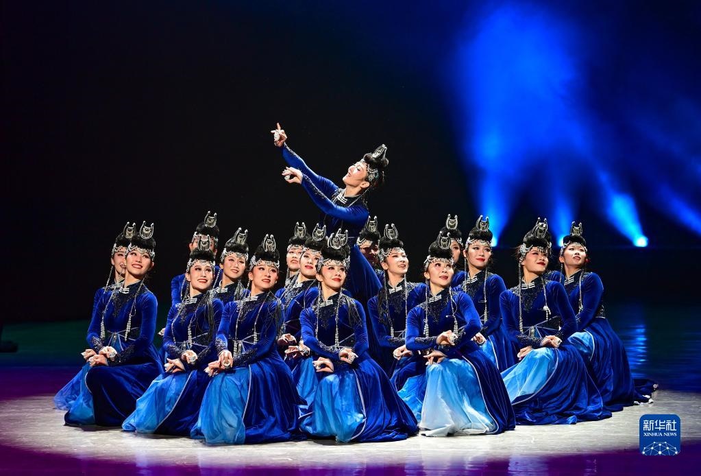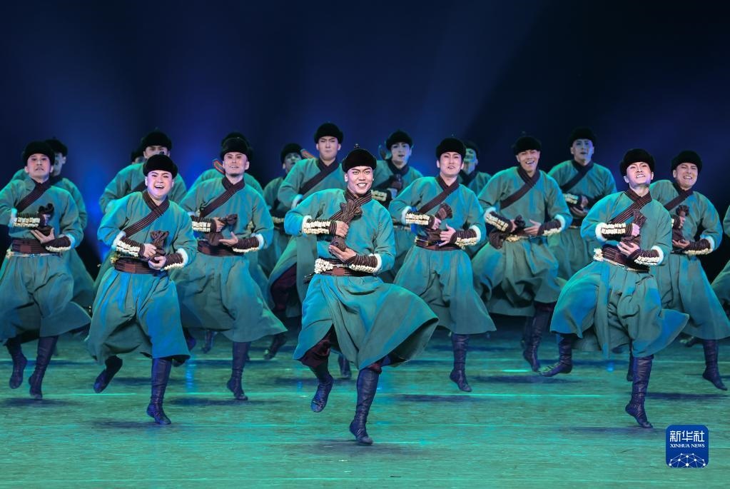 3月27日,內(nèi)蒙古自治區(qū)直屬烏蘭牧騎參賽演員表演群舞《風(fēng)之馬》。新華社發(fā)(王正攝)