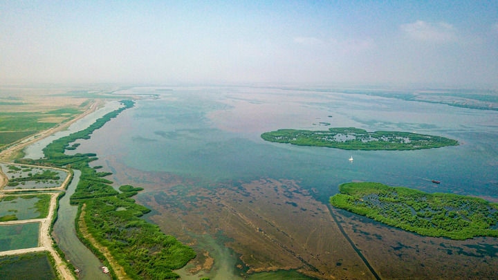 盛夏時節(jié),藍天白云映襯下的烏梁素海碧波蕩漾,蘆葦搖曳,飛鳥翔集。據烏梁素海濕地水禽自然保護區(qū)管理站工作人員馬海明介紹,每年開春以后,烏梁素海都會迎來大批候鳥,種類、數量不斷增加,其中包括斑頭秋沙鴨等國家重點保護野生動物。