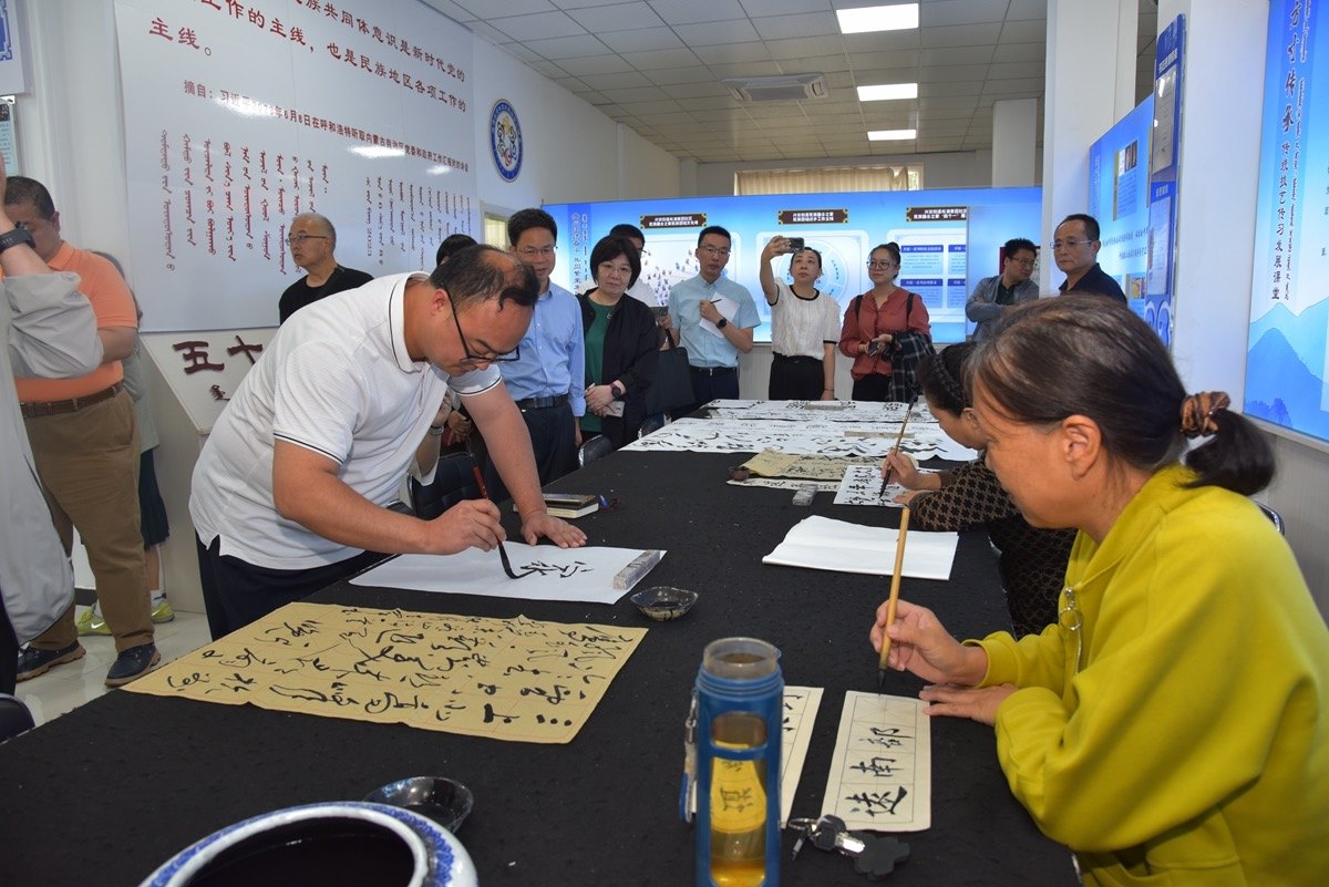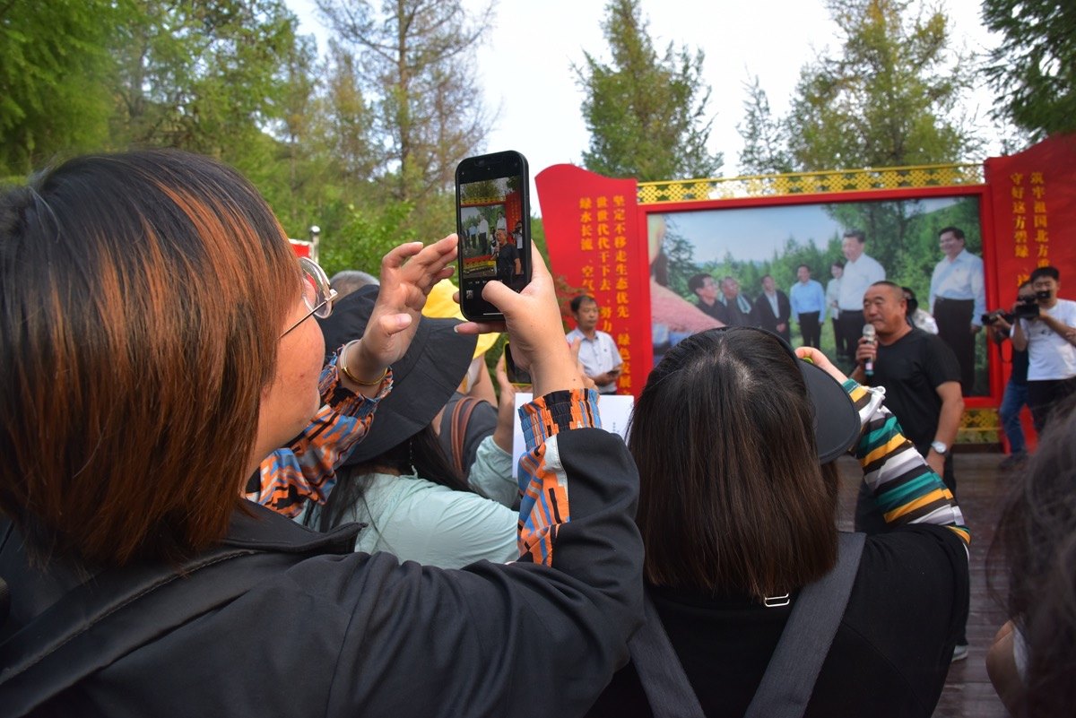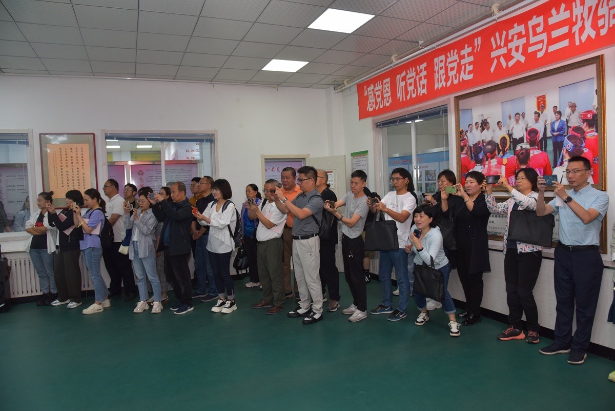 新聞工作者邊看邊交流,在實地調(diào)研中感受赤峰經(jīng)濟發(fā)展、生態(tài)環(huán)境、民族團結(jié)等方面的工作亮點與變化。