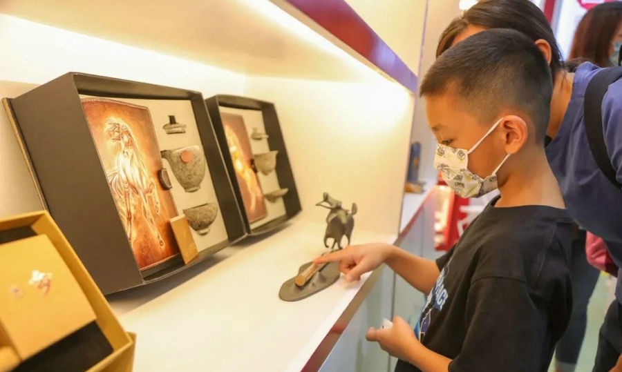 7月19日上午10:00,第33屆香港書展在香港會議展覽中心開幕。內(nèi)蒙古主題?。▍^(qū))展區(qū)正式亮相,展出近年來內(nèi)蒙古自治區(qū)出版的50種精品主題出版物、200種文藝類出版物、20種數(shù)字融合出版物、89種優(yōu)秀音像制品等,同時還展出了80種優(yōu)秀少兒出版物、《內(nèi)蒙古印象》攝影作品、“內(nèi)蒙古禮物”文創(chuàng)產(chǎn)品等,國家一級文物紅山文化玉龍高仿制品也亮相展區(qū),吸引眾多讀者駐足觀賞。