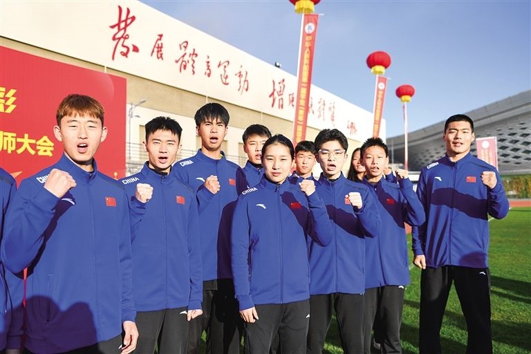 即將參加第一屆全國學生(青年)運動會的我區(qū)運動員在動員大會上高呼“團結拼搏、勇創(chuàng)佳績”