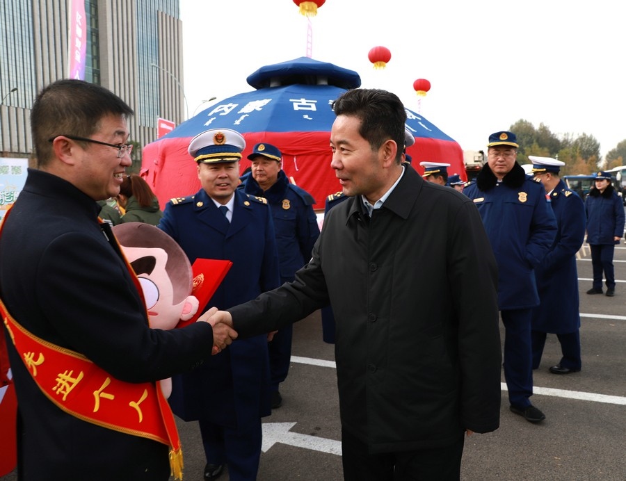 儀式上,內(nèi)蒙古自治區(qū)消防救援總隊總隊長李俊豐宣布“2023年度內(nèi)蒙古自治區(qū)消防宣傳月活動啟動”,消防主題公交車、共享單車、外賣車等“流動消防宣傳員”紛紛“上崗”,“消防+燃油”“消防+燃氣”“消防+用電”“消防+電動車”等主題宣傳集市火熱“開市”,2023年度內(nèi)蒙古自治區(qū)消防宣傳月活動正式拉開帷幕。