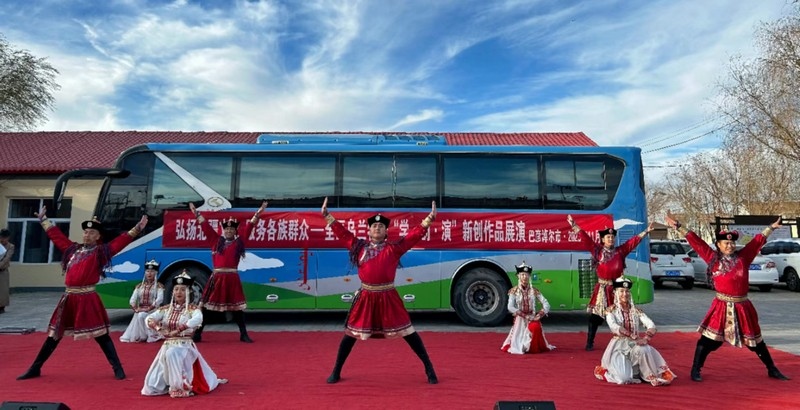弘揚(yáng)北疆文化 服務(wù)各族群眾——全區(qū)烏蘭牧騎“學(xué)·創(chuàng)·演”新創(chuàng)作品展演呼和浩特賽罕區(qū)敕勒川路街道東古樓村活動(dòng)現(xiàn)場