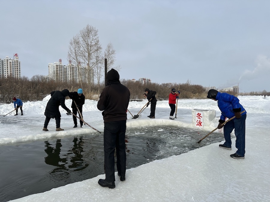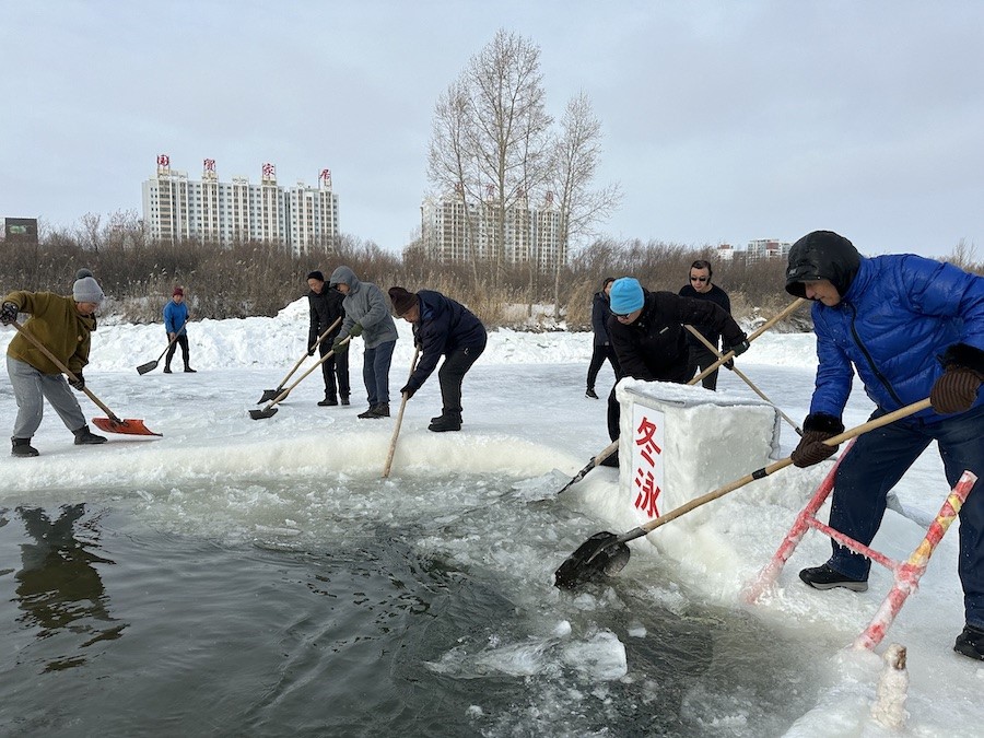 北疆新聞呼倫貝爾1月14日消息(記者 楊凈毓 李文華)1月中旬的內(nèi)蒙古呼倫貝爾,冰天雪地中,海拉爾冬泳協(xié)會(huì)在零下21℃的溫度下,鑿冰冬泳祝福第十四屆全國冬季運(yùn)動(dòng)會(huì)召開。
