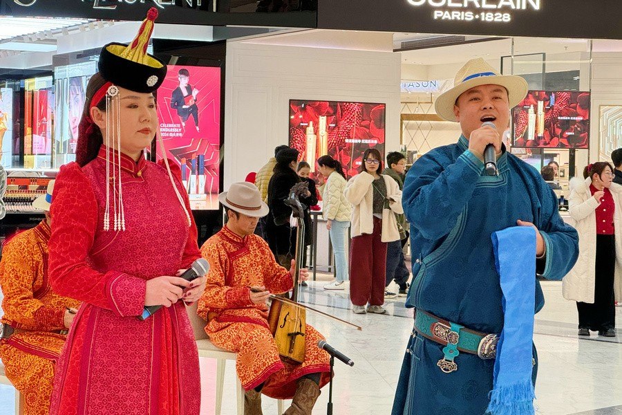 呼和浩特市文藝志愿者服務(wù)協(xié)會(huì)副主席張恒、國(guó)家二級(jí)演員李美麗為觀眾表演了二人臺(tái)傳統(tǒng)唱段《拜大年》、《掛紅燈》,舞蹈《站在草原望北京》、馬頭琴合奏《萬(wàn)馬奔騰》、經(jīng)典草原歌曲《敖包相會(huì)》等,為現(xiàn)場(chǎng)觀眾展現(xiàn)了呼和浩特多元文化的魅力,特別編排的網(wǎng)紅舞蹈《蒙古舞版科目三》和流行歌曲《奢香夫人》等節(jié)目,引起了現(xiàn)場(chǎng)年輕觀眾的共鳴。藝術(shù)家們用充滿激情的表演送上新春的祝福,并誠(chéng)邀四海賓朋共赴“十四冬”。