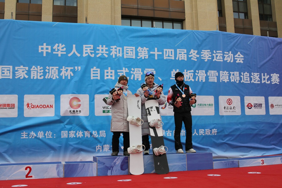北疆新聞烏蘭察布2月19日電(記者 張楊 王豐)2月19日,第十四屆全國冬季運動會單板滑雪公開組男子障礙追逐賽在烏蘭察布涼城滑雪場結束,吉林隊選手葉康佳率先沖過終點線摘得金牌。這是他在“十四冬”上收獲的首枚金牌。內蒙古選手李柯新、山西選手張彬分獲亞、季軍。