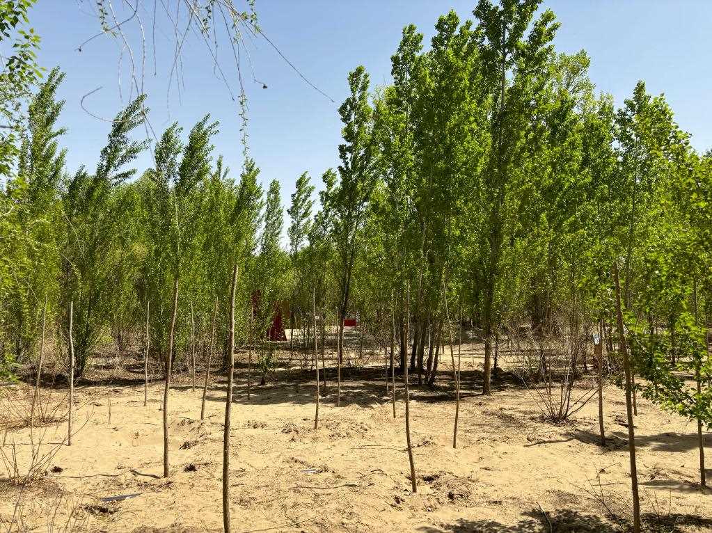 5月的河套平原萬(wàn)物萌發(fā),充滿生機(jī)與希望。走進(jìn)地處黃河“幾字彎”的內(nèi)蒙古自治區(qū)巴彥淖爾市臨河區(qū)新華林場(chǎng),沙地里一棵棵堅(jiān)韌挺拔的樹(shù)木正迎著春風(fēng),舒枝展葉,茁壯生長(zhǎng)。