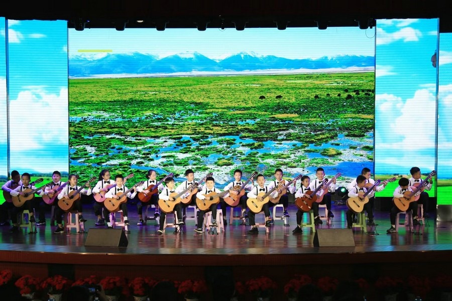合唱《強(qiáng)國一代有我在》《祖國有我》、古典吉他合奏《天邊》、京劇《梨園薈萃》、朗誦《致敬祖國》、中國舞《碇步橋》、合唱《黨的孩子》《四季的問候》、《民族團(tuán)結(jié)英雄贊歌》、古箏齊奏《上春山》、拉丁現(xiàn)代舞《紅旗飄飄》、朗誦《你好,未來的我們》、師生舞蹈《外婆橋》、合唱《石榴籽一家親》等13個(gè)展演節(jié)目輪番上演。