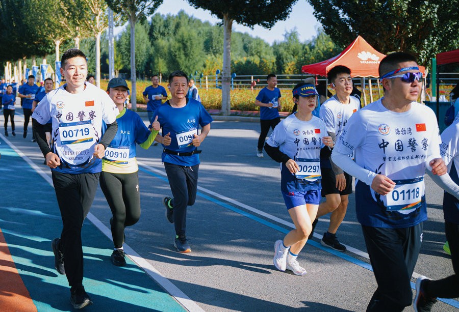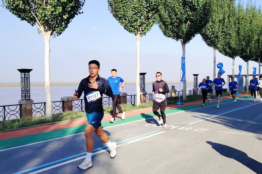 跑者沿烏海湖畔激情奔跑