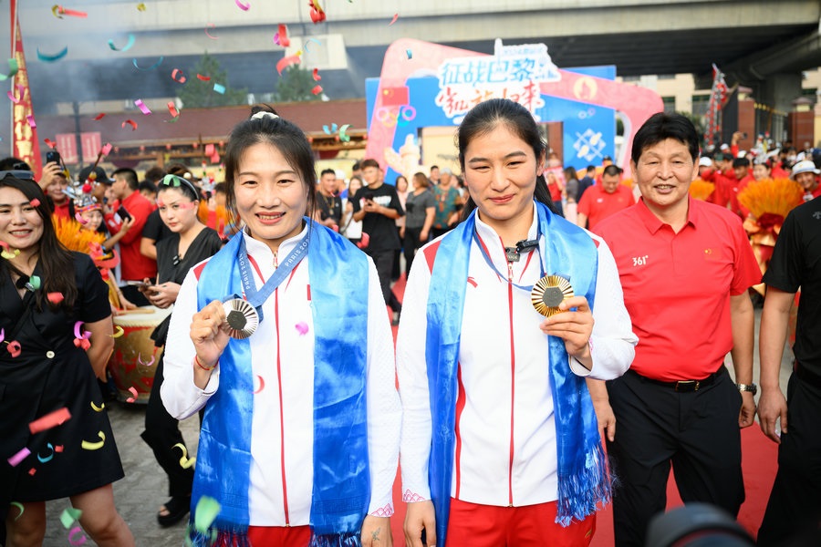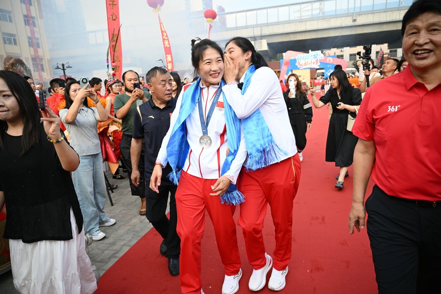 8月15日,征戰(zhàn)巴黎奧運(yùn)會(huì)的內(nèi)蒙古健兒李倩、楊柳乘坐高鐵,從北京回到呼和浩特。李倩在巴黎奧運(yùn)會(huì)斬獲女子75公斤級(jí)金牌,楊柳摘得女子66公斤級(jí)銀牌。奧運(yùn)健兒載譽(yù)歸來(lái),身在家鄉(xiāng)的親朋好友、隊(duì)友教練為她們準(zhǔn)備了盛大的歡迎儀式。(記者 李艷紅 李文華 林則志 石茹意)