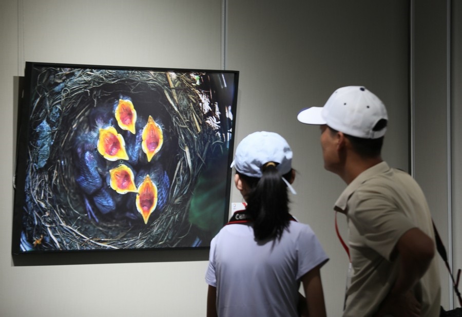游客參觀“多彩的家園”野生動(dòng)植物攝影作品展