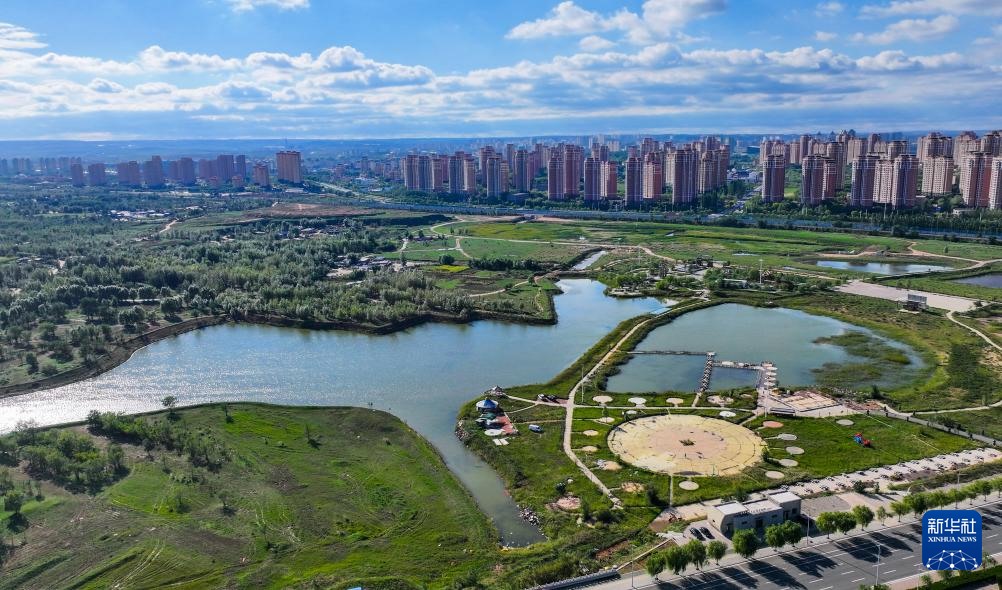 ??這是9月19日拍攝的鄂爾多斯市康巴什區(qū)風光(無人機照片)。