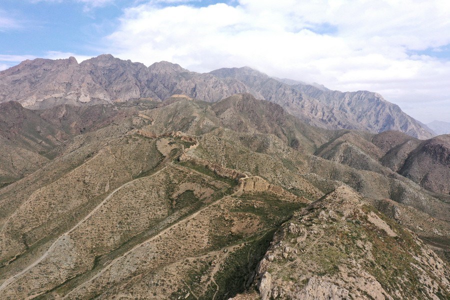 10月12日,從空中俯瞰三關(guān)長(zhǎng)城。