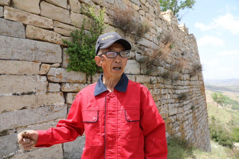 “家在長城腳下,從小就與長城為伴,那時(shí)長城上鋪滿青磚,外側(cè)以青石砌筑?!敝x軍邊走邊說,“之前由于保護(hù)長城的意識薄弱,村里人把長城上的磚石拆下砌筑窯洞。青石有的太重,只能將其鑿分為二,兩人合力用杠才能抬走。”