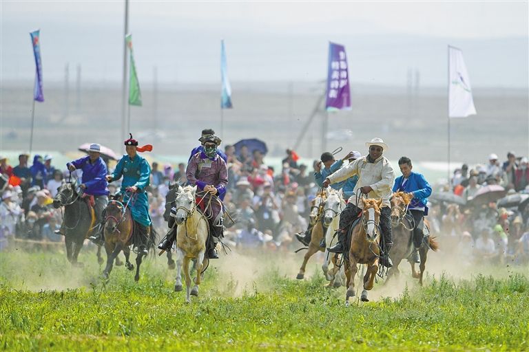 在錫林郭勒盟舉行的草原那達(dá)慕吸引了眾多游客和當(dāng)?shù)厝罕姛崆閰⑴c。