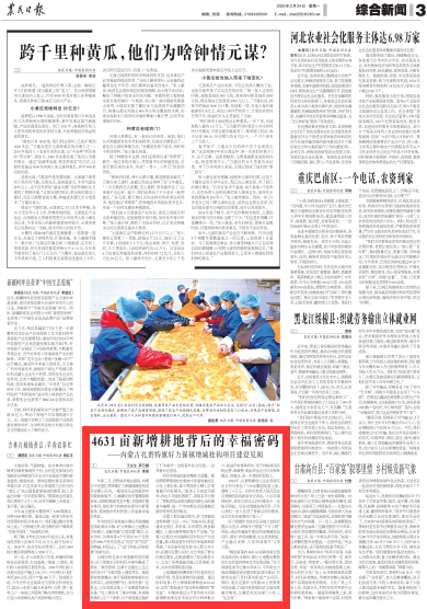 2025年2月24日,《農(nóng)民日?qǐng)?bào)》第3版刊發(fā)題為《4631畝新增耕地背后的幸福密碼——內(nèi)蒙古扎賚特旗好力保鎮(zhèn)增減掛鉤項(xiàng)目建設(shè)見(jiàn)聞》的文章,報(bào)道了內(nèi)蒙古興安盟扎賚特旗好力保鎮(zhèn)以土地整治為突破口,創(chuàng)新實(shí)施“五型安置”模式,讓水田村、先鋒村等4個(gè)行政村16個(gè)自然屯的898戶村民實(shí)現(xiàn)從“憂居”到“優(yōu)居”的跨越,村民過(guò)上了“出門種地,回家住樓”的新生活。