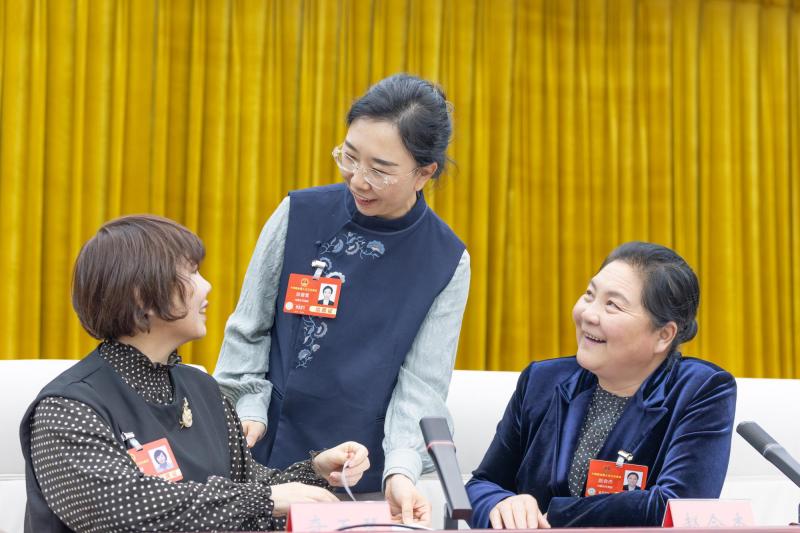 3月7日,全國人大代表胡海娟(左)建議,通過在各級學校設(shè)立專職家庭教育指導教師等舉措,強化家庭教育指導,推動家校社協(xié)同育人,促進青少年健康成長。記者 于濤 攝
