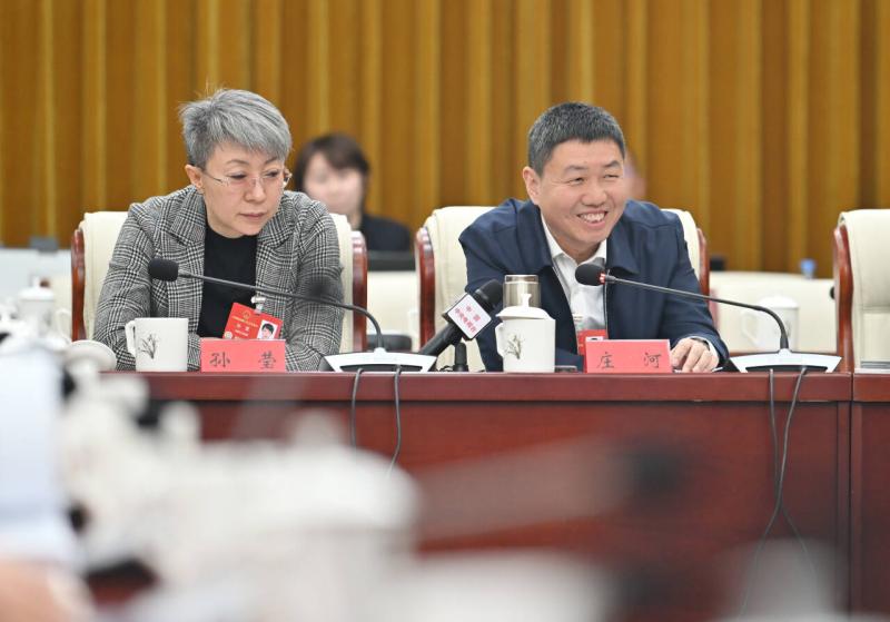 3月7日,全國人大代表莊河(右)說,中國鐵路呼和浩特局集團有限公司將積極落實政府工作報告的相關(guān)要求,加強鐵路基礎(chǔ)設(shè)施建設(shè),優(yōu)化客運產(chǎn)品,實現(xiàn)多樣供給,大力發(fā)展鐵路現(xiàn)代物流,發(fā)揮好鐵路對推動經(jīng)濟社會高質(zhì)量發(fā)展的支撐保障作用。記者 馬建兵 攝