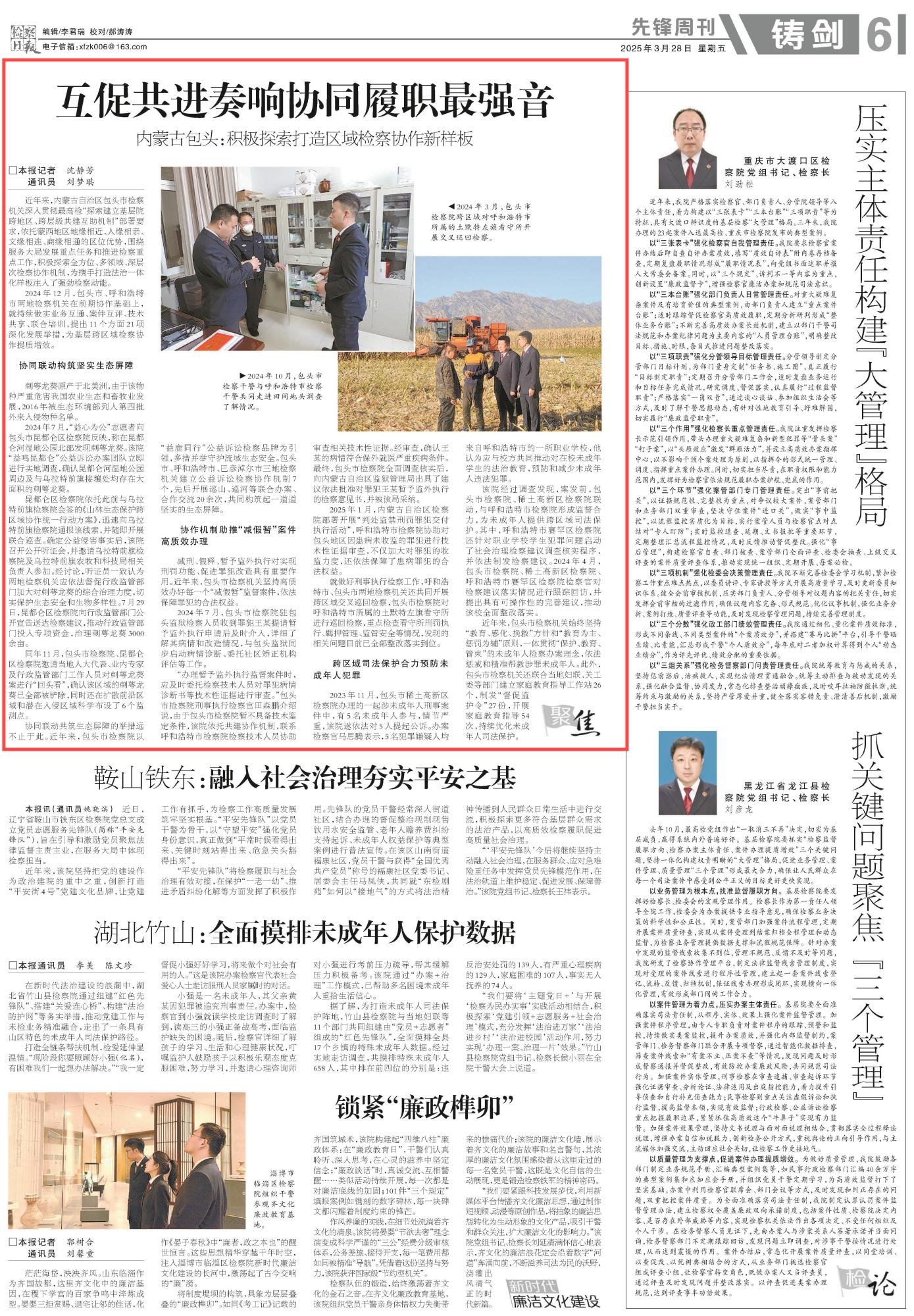 2025年3月28日,《檢察日報(bào)》第6版刊發(fā)題為《互促共進(jìn)奏響協(xié)同履職最強(qiáng)音 內(nèi)蒙古包頭:積極探索打造區(qū)域檢察協(xié)作新樣板》的文章,報(bào)道了內(nèi)蒙古自治區(qū)包頭市檢察機(jī)關(guān)深入貫徹最高檢“探索建立基層院跨地區(qū)、跨層級共建互助機(jī)制”部署要求,積極探索全方位、多領(lǐng)域、深層次檢察協(xié)作機(jī)制,為攜手打造法治一體化樣板注入了強(qiáng)勁檢察動(dòng)能。