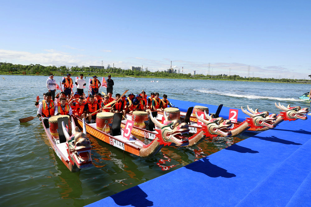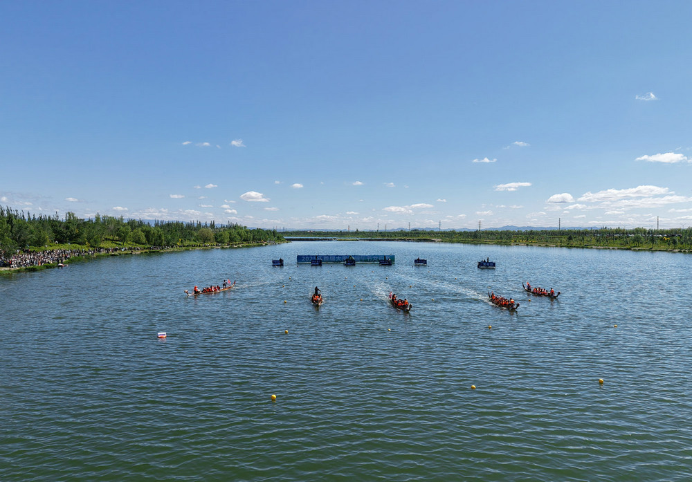 5月31日,呼和浩特大黑河賽罕區(qū)段相當(dāng)熱鬧,河面波光粼粼,岸邊人山人海,近萬(wàn)市民和游客都趕來(lái)圍觀2025年首屆大黑河端午龍舟賽。這次比賽吸引了50多支隊(duì)伍600多人參賽。