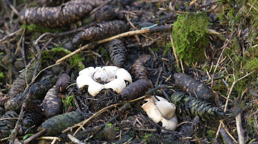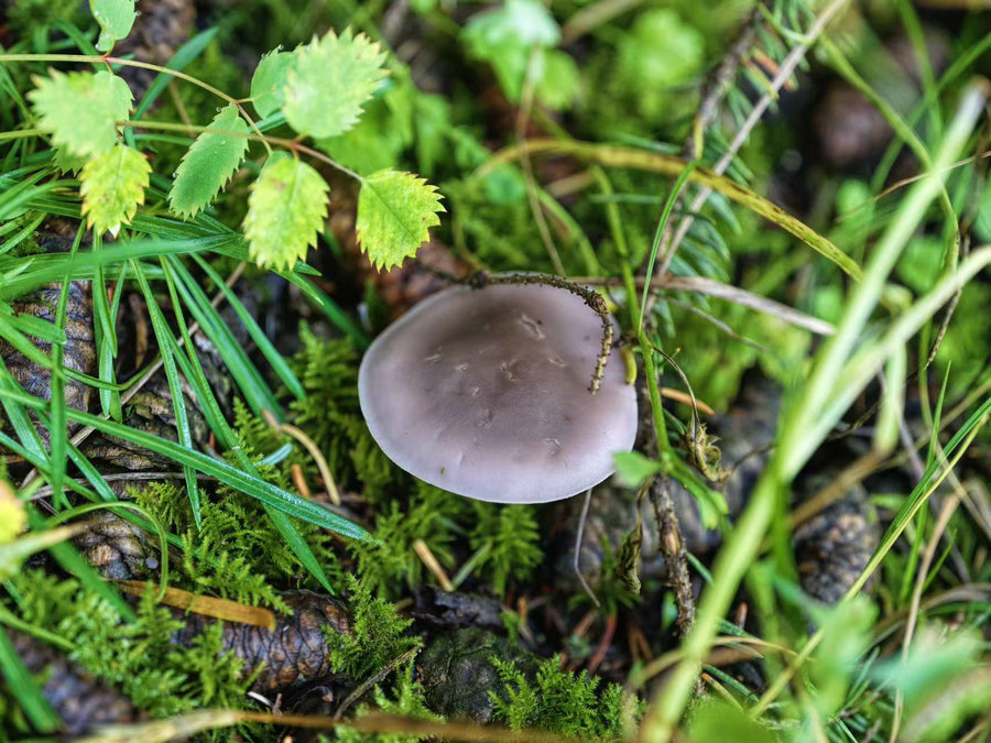 山間清風裹挾著草木與泥土的濕潤氣息撲面而來,腳下的步道旁,松塔與翠綠的雜草間,不時冒出一朵朵野生蘑菇,宛如散落在林間的“小傘”,為靜謐的山野增添了幾分靈動。