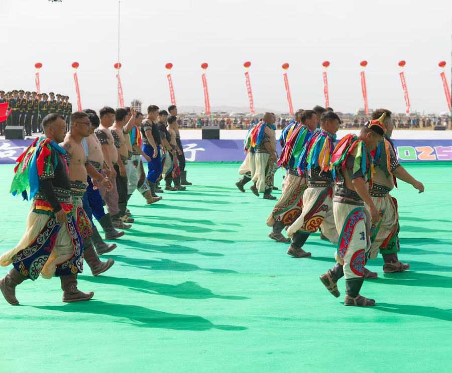 2025阿拉善那達(dá)慕開幕式上儀仗隊護(hù)送國旗走向場地