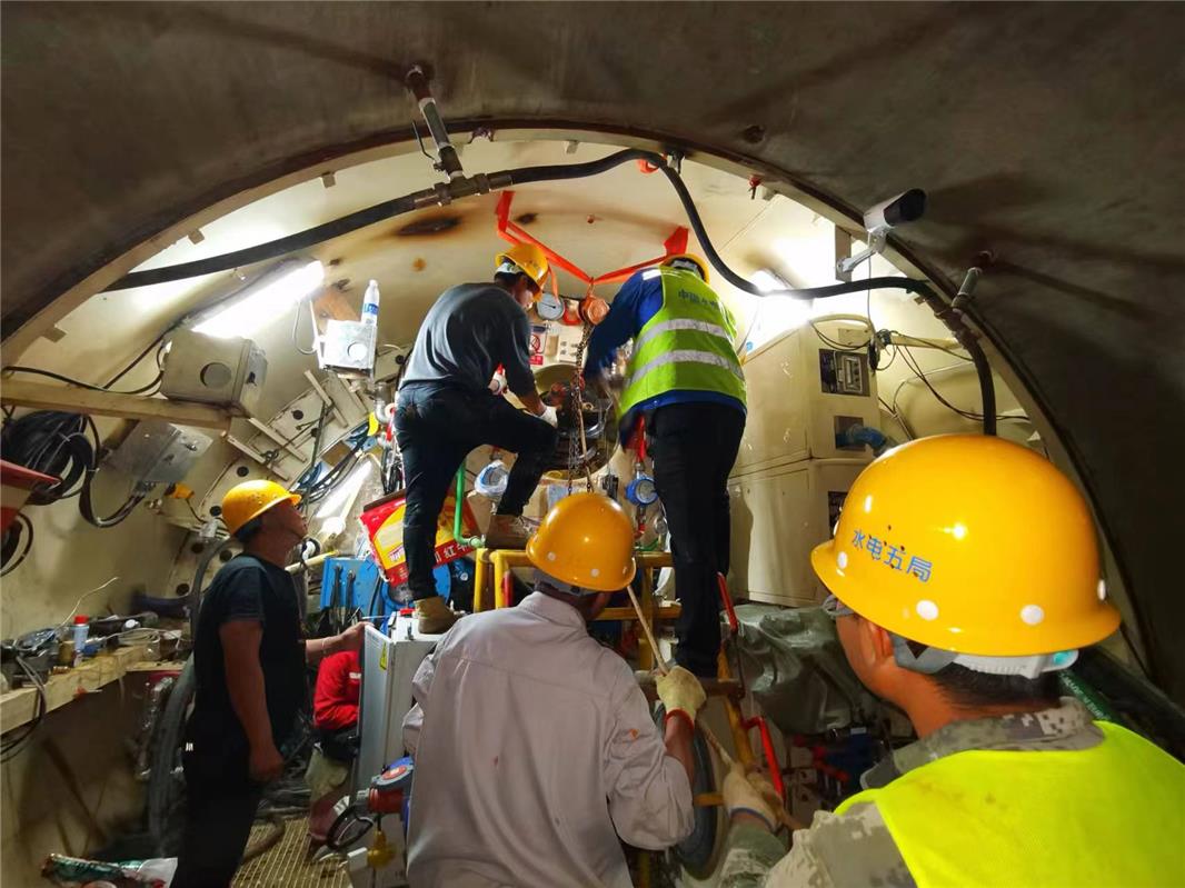 工人在高壓艙內(nèi)進(jìn)行更換刀頭作業(yè)。