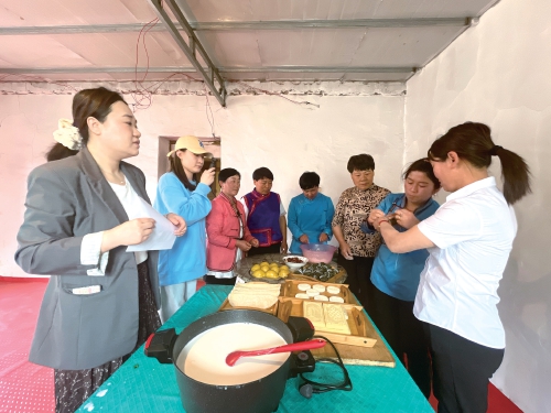 2025年端午節(jié)前,巴仁哲里木鎮(zhèn)宣傳委員、宣傳干事在寶日根嘎查拍攝蒙古族和漢族群眾一起包粽子、制作奶皮子的畫面。 農(nóng)民日?qǐng)?bào)·中國(guó)農(nóng)網(wǎng)記者 劉杰 攝