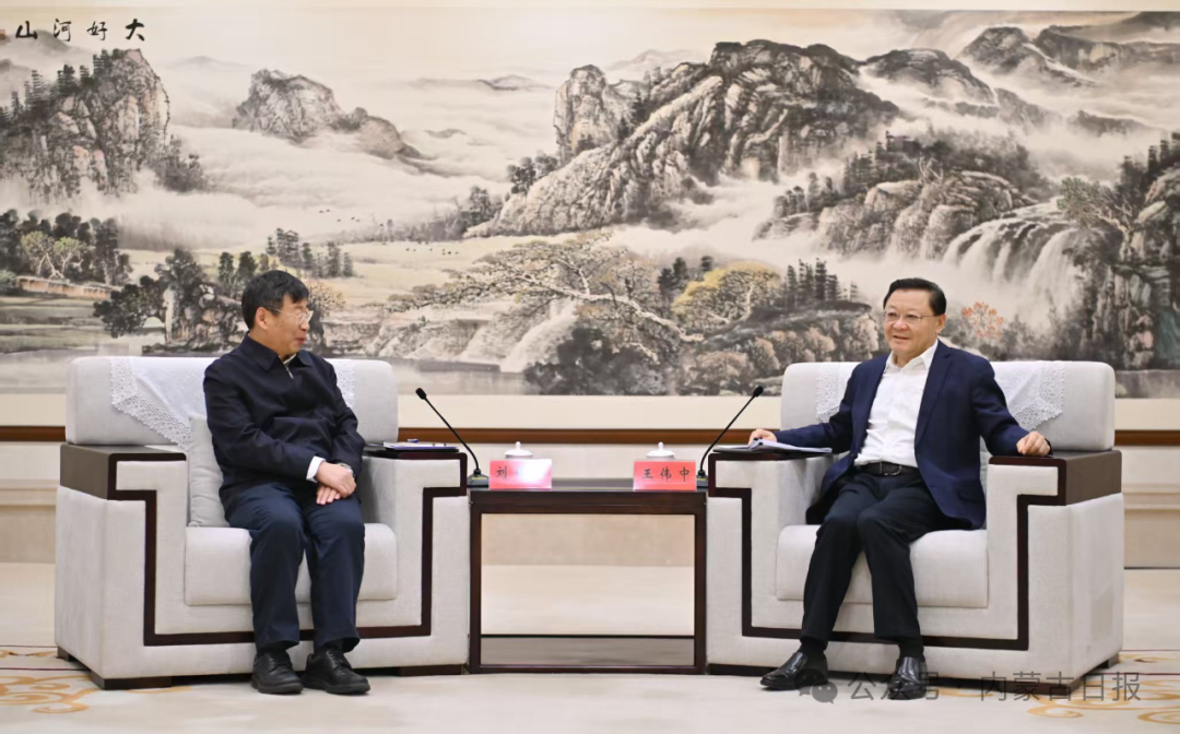 11月12日,自治區(qū)黨委書(shū)記王偉中,自治區(qū)黨委副書(shū)記、自治區(qū)人民政府主席包鋼在呼和浩特會(huì)見(jiàn)中國(guó)長(zhǎng)江三峽集團(tuán)黨組書(shū)記、董事長(zhǎng)劉偉平一行。草原云·內(nèi)蒙古新聞網(wǎng)記者 馬建兵 攝