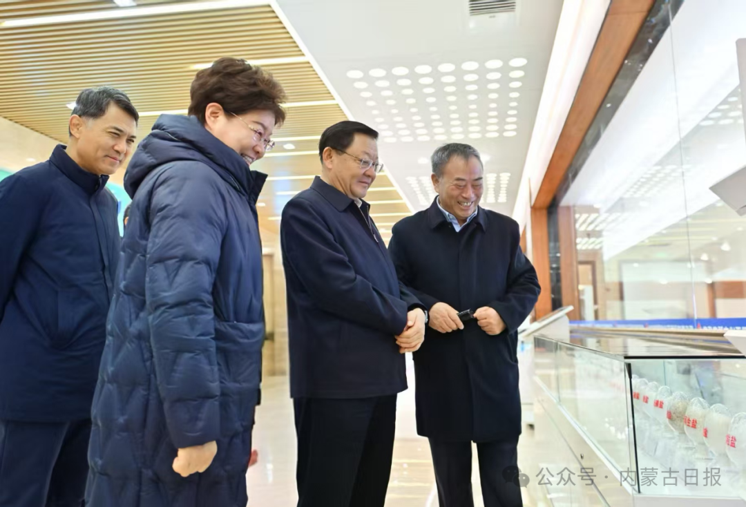 11月18日,自治區(qū)黨委書(shū)記王偉中來(lái)到中鹽內(nèi)蒙古化工股份有限公司,了解企業(yè)發(fā)展、技術(shù)創(chuàng)新、生產(chǎn)運(yùn)營(yíng)等情況。草原云·內(nèi)蒙古新聞網(wǎng)記者 馬建兵 攝