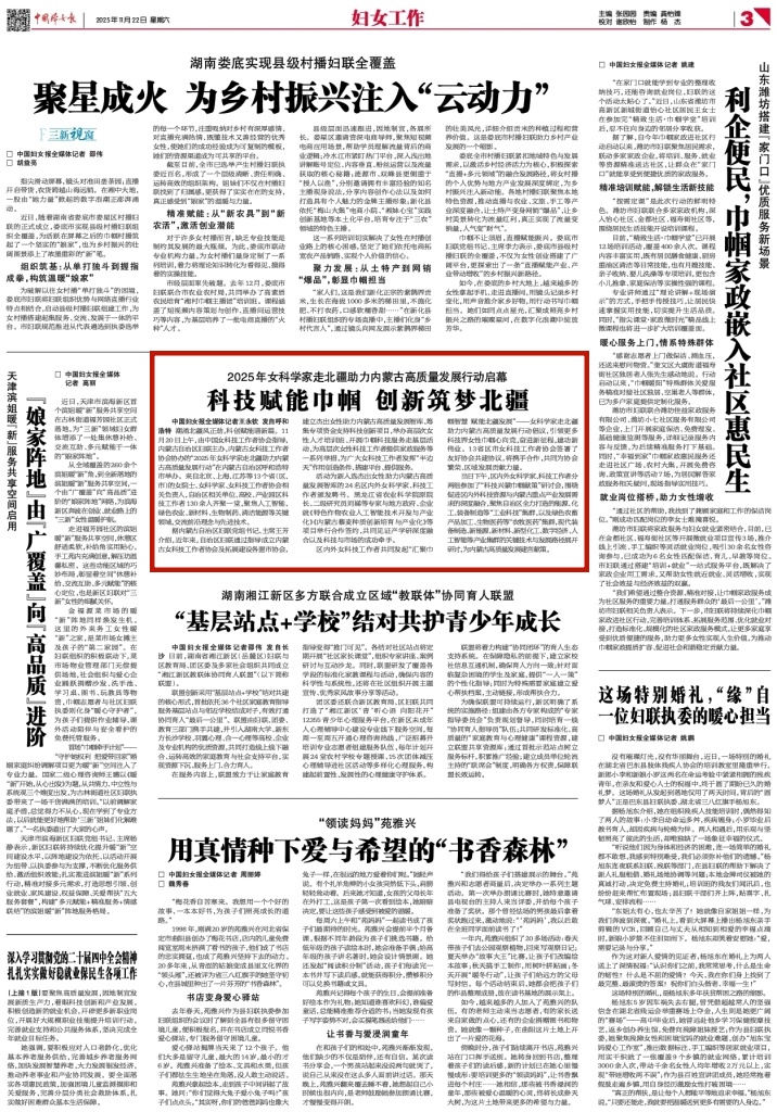2025年11月22日《中國婦女報》第3版刊發(fā)了《2025年女科學(xué)家走北疆助力內(nèi)蒙古高質(zhì)量發(fā)展行動啟幕 科技賦能巾幗 創(chuàng)新筑夢北疆》的文章,報道了“2025年女科學(xué)家走北疆助力內(nèi)蒙古高質(zhì)量發(fā)展行動”在內(nèi)蒙古自治區(qū)呼和浩特市舉辦,來自13個?。▍^(qū)、市)的女院士、女科學(xué)家等130余人齊聚一堂,交流前沿理念與先進技術(shù)。