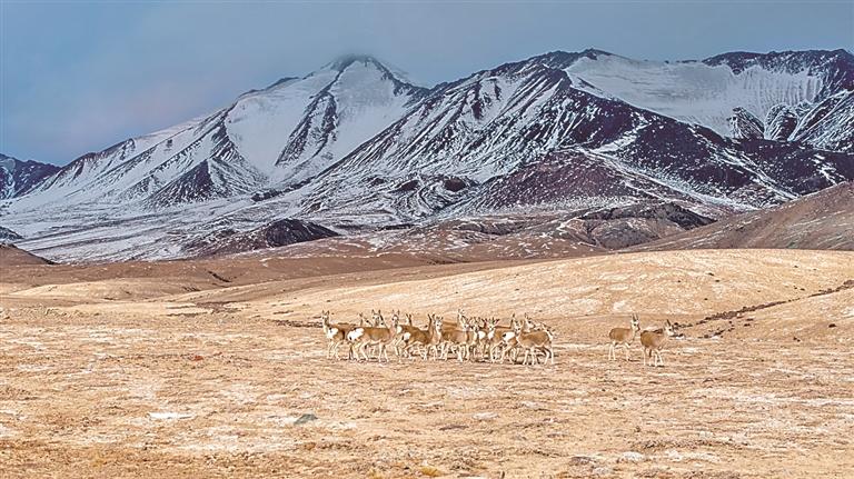 冬日,國家二級(jí)保護(hù)野生動(dòng)物藏原羚在甘肅省阿克塞縣阿勒騰鄉(xiāng)哈爾騰草原活動(dòng)覓食。新華社發(fā)