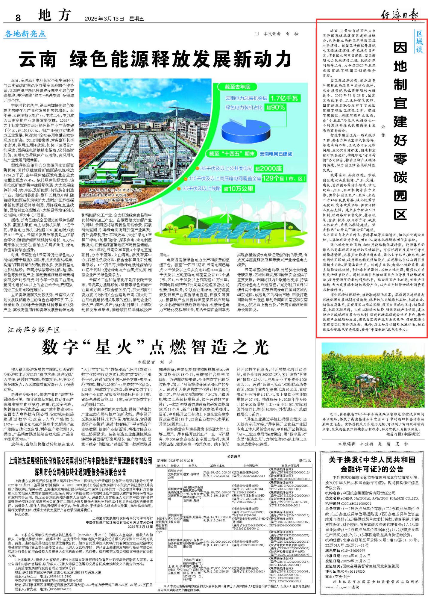 2026年3月13日《經(jīng)濟日報》第8版刊發(fā)了《因地制宜建好零碳園區(qū)》的文章,報道了近日,包頭稀土高新區(qū)啟動國家級零碳園區(qū)建設,計劃 2027 年底完成創(chuàng)建。零碳園區(qū)是綠色低碳轉(zhuǎn)型關鍵抓手,建設需統(tǒng)籌能源、產(chǎn)業(yè)等多領域,解決重形式、綠電消納不暢等問題,通過優(yōu)化頂層設計、強化綠電就地消納、深化區(qū)域協(xié)同聯(lián)動,以務實舉措推進落地,助力高質(zhì)量發(fā)展。