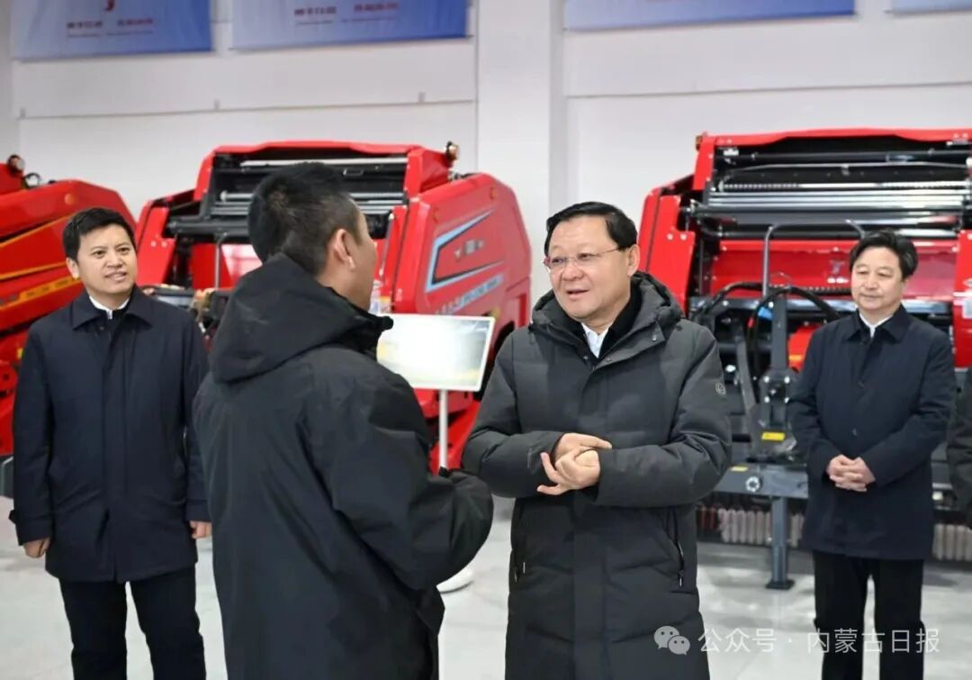 3月31日,自治區(qū)黨委書記、人大常委會主任王偉中在玖嘉機(jī)械設(shè)備制造公司調(diào)研農(nóng)牧機(jī)械裝備研發(fā)制造、企業(yè)生產(chǎn)經(jīng)營等情況。草原云·內(nèi)蒙古新聞網(wǎng)記者 馬建兵 攝