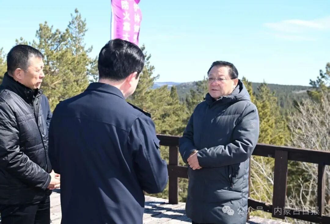 4月1日,自治區(qū)黨委書記、人大常委會主任王偉中到紅花爾基林業(yè)局了解森林草原防滅火情況。草原云·內(nèi)蒙古新聞網(wǎng)記者 馬建兵 攝