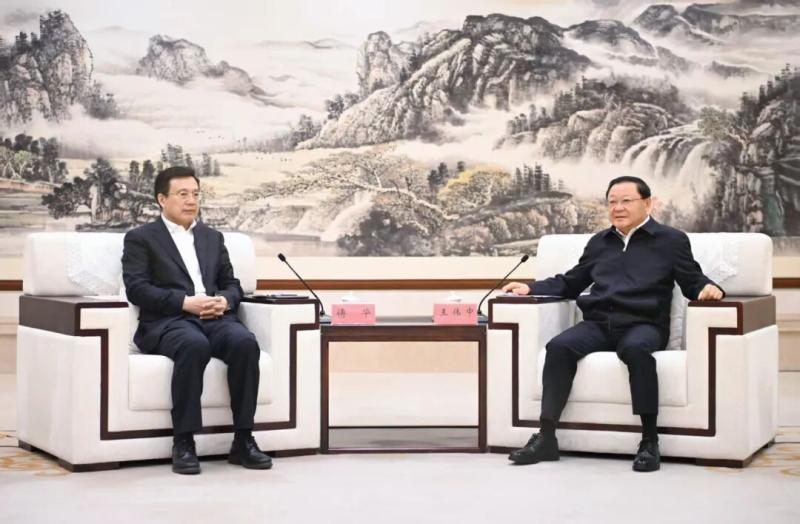4月12日,自治區(qū)黨委書記、人大常委會主任王偉中在呼和浩特會見新華通訊社社長、黨組書記傅華一行。草原云·內(nèi)蒙古新聞網(wǎng)記者 馬建兵 攝
